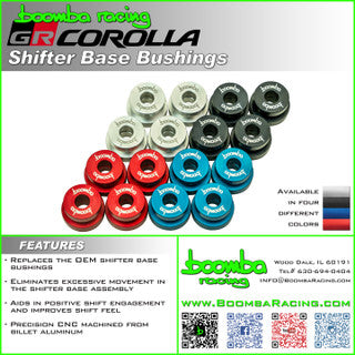Boomba Racing Shifter Base Bushings are a direct replacement for the OEM rubber bushings. Once installed, they completely eliminate excess movement in the shifter assembly, providing a much more precise and exact shifting experience.