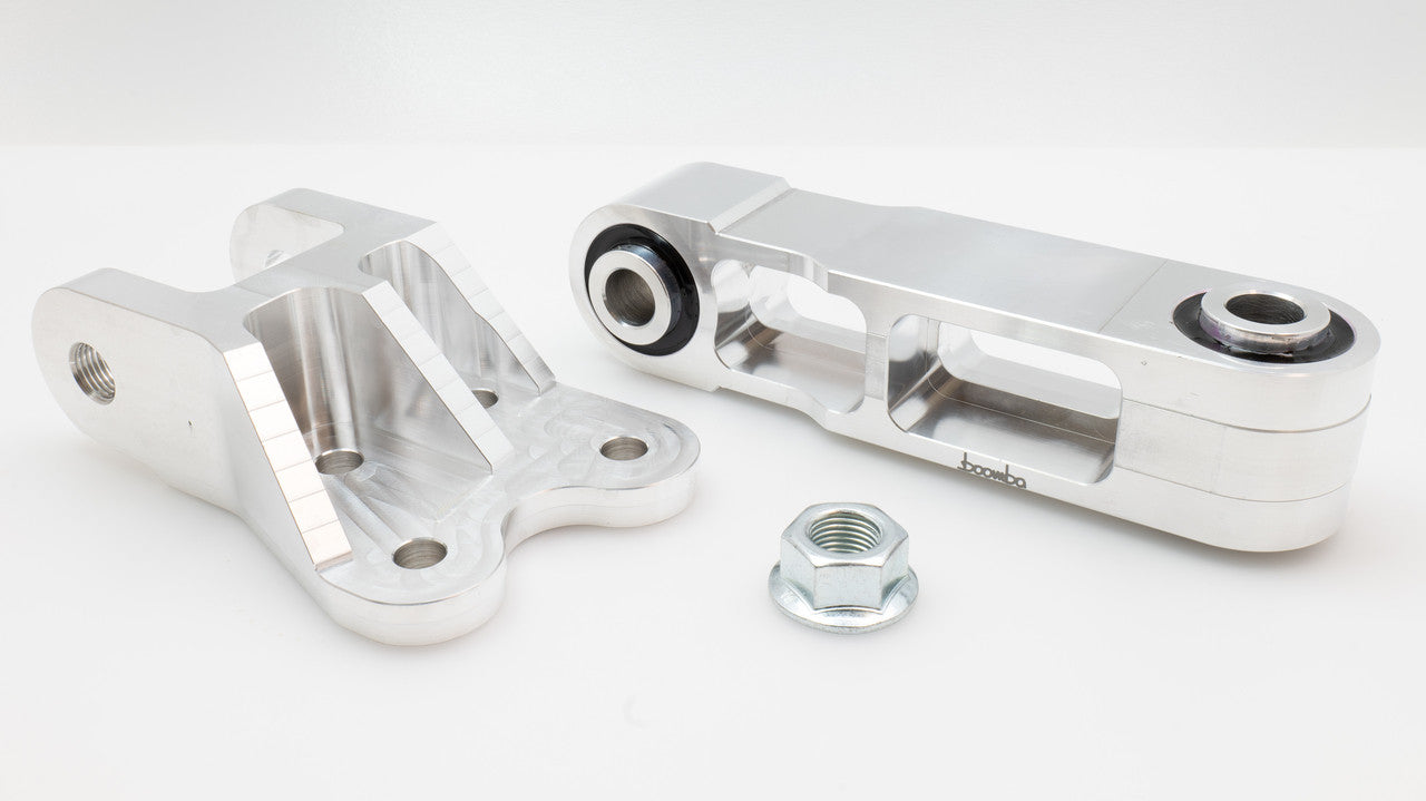 This mount is beautifully CNC machined from 6061 aircraft-grade billet aluminum at our Wood Dale, IL manufacturing headquarters. Unlike our competitors, our mount features hand-poured, molded-in polyurethane bushings instead of pressed-in bushings. This design ensures a more durable motor mount, as the collar cannot rotate in the bushing and cause friction. The mount stabilizes the engine during launches, hard acceleration, and aggressive turns, drastically reducing wheel hop and improving power transfer to the ground.