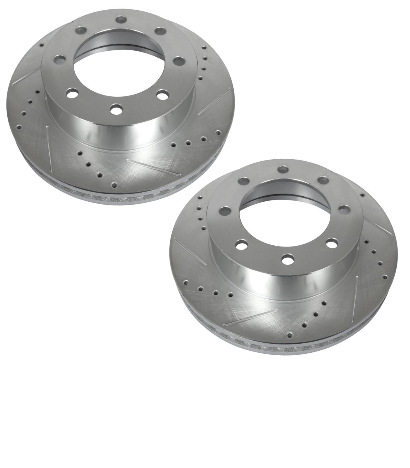 Summit Racing™ offers Extreme Performance coated brake rotors for thousands of vehicles, from the 1960s and up. They're manufactured on CNC machines using CAD-CAM design for perfect balance and alignment, then coated with silver zinc to resist corrosion. These rotors provide you with maximum stopping power, reduced warping, and longer life. The cross-drilled holes and slots provide an exit route for gasses and dust, resulting in better heat dissipation and less brake fade under hard use. Other solid-surface rotors allow gasses to create a cushion between the pad and the brake rotor, resulting in poor brake performance. The cross-drilled holes and slots clear away harmful gasses, restoring full pad-to-rotor contact. These coated rotors are a terrific performance upgrade when replacing your brakes. Order the model recommended for fitment on your vehicle.