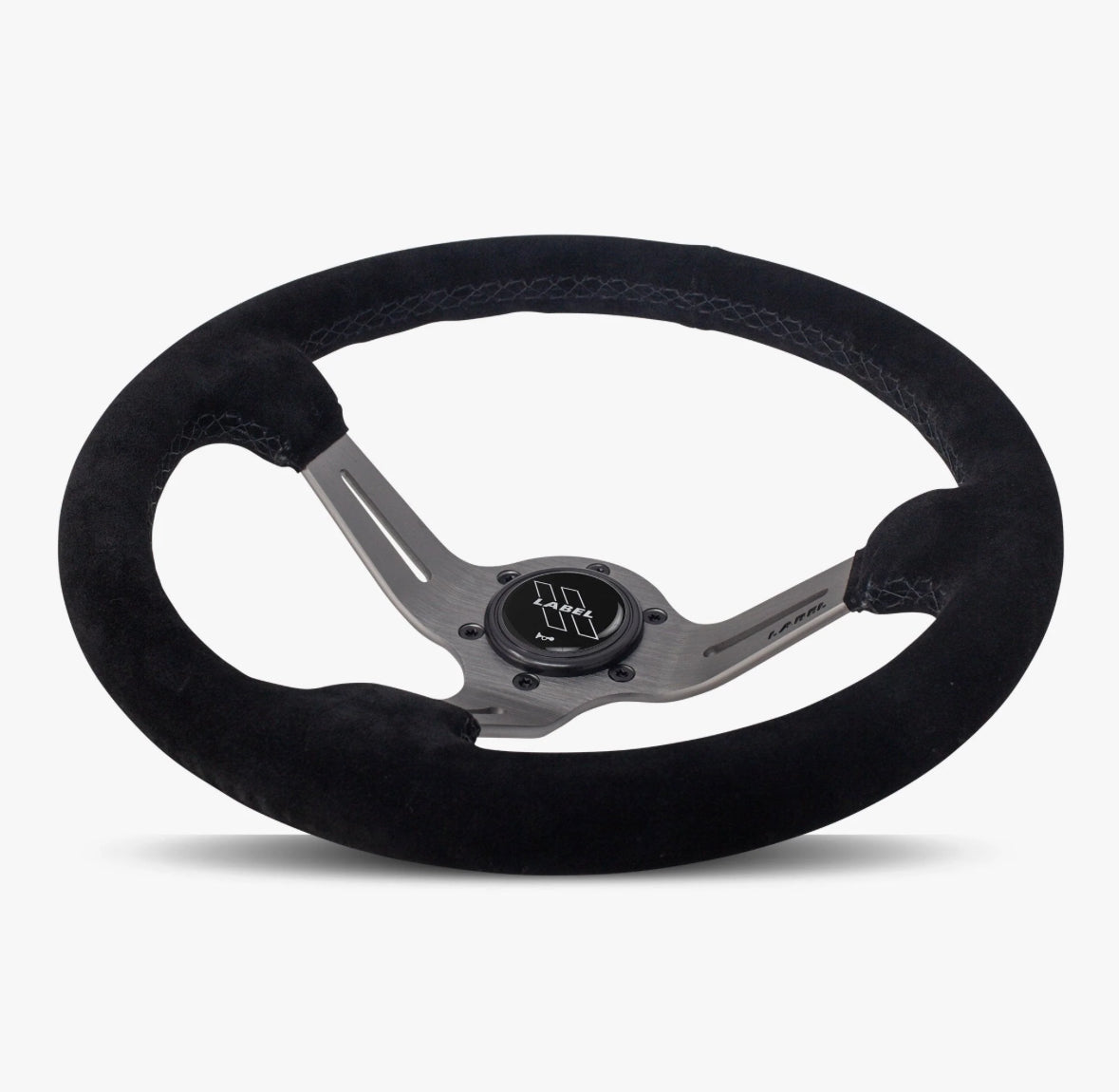 The Le Mans | Black Alcantara Suede | Graphite Spoke | Black Stitch